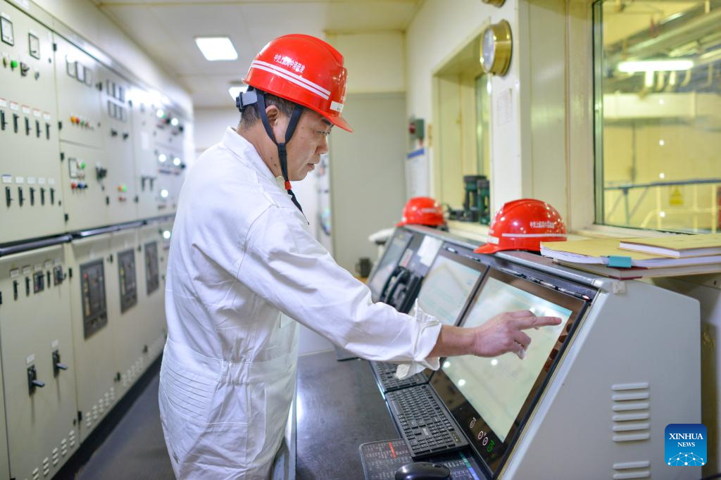Chief engineer Cai Guohan checks equipment on the Chinese dredger "Xin Hai Feng" in Klang, Selangor state, Malaysia, March 13, 2025. The Chinese dredger "Xin Hai Feng" is a trailing suction hopper dredger owned by China Communications Construction Company (CCCC) Shanghai Dredging Co., Ltd., with a hopper capacity of 16,888 cubic meters and a total power of 25,643 kilowatts. It is currently one of the largest dredgers of CCCC Shanghai Dredging Co., Ltd.