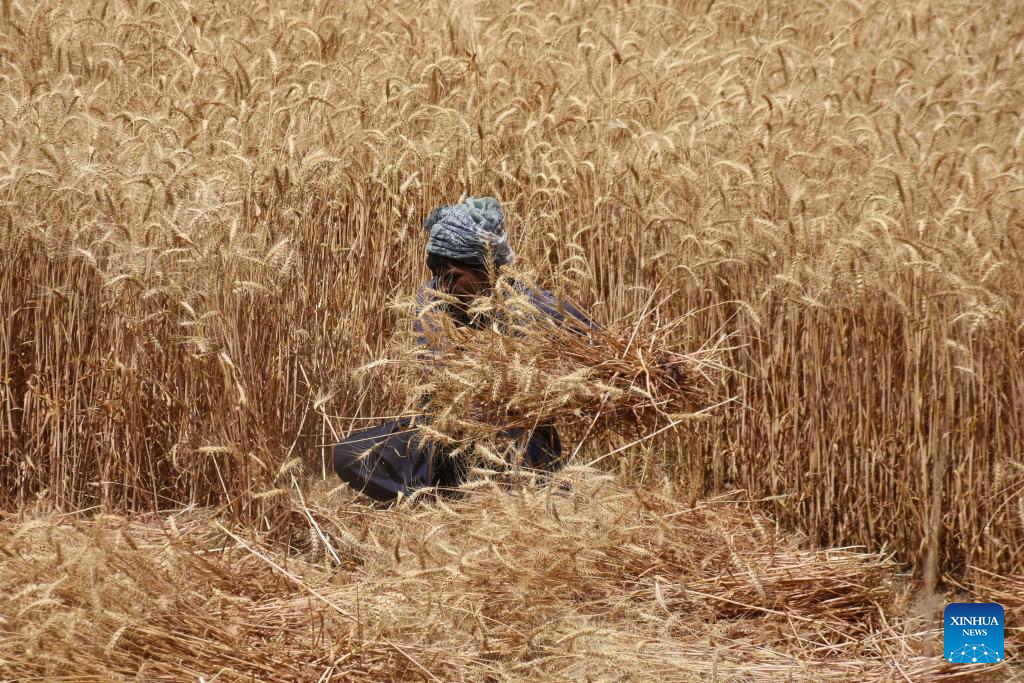 A farmer harvests wheat at a field in Lahore, Pakistan on April 26, 2025. (Photo by Sajjad/Xinhua)