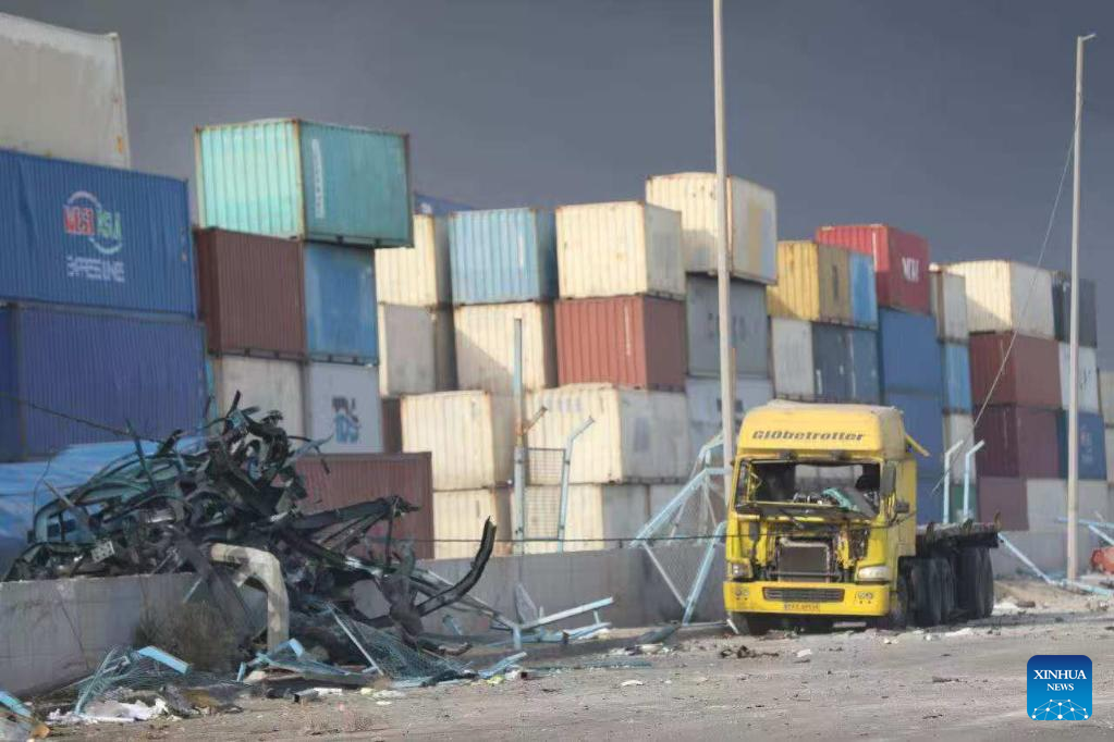 This photo shows the explosion site at Shahid Rajaee Port in Bandar Abbas of Hormozgan province, Iran, April 26, 2025. At least 25 people were killed and 800 others injured in a huge explosion at a port on Saturday in Iran's southern province of Hormozgan, media reported Sunday. The exact cause of the incident has not been determined yet, the official news agency IRNA said. (Mehr News Agency/Handout via Xinhua)