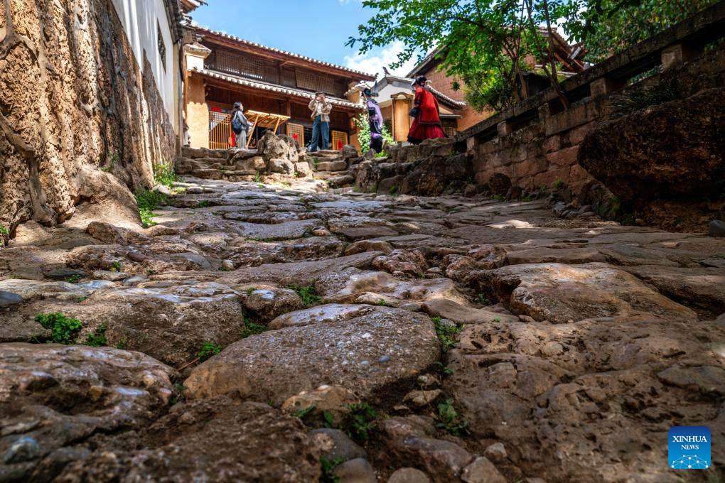 Villagers and tourists are pictured in Shaxi Town, Jianchuan County, southwest China's Yunnan Province, April 18, 2025. A remote town in Jianchuan County, Shaxi was once an important trading hub for tea, herbs, silks and salt on the ancient Tea Horse Road, a trade route dating back to the Tang Dynasty (618-907).