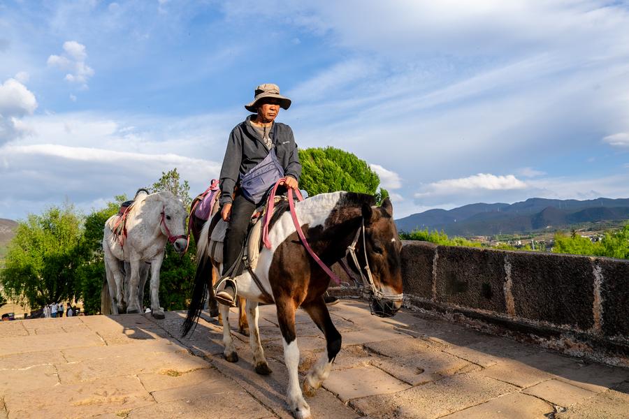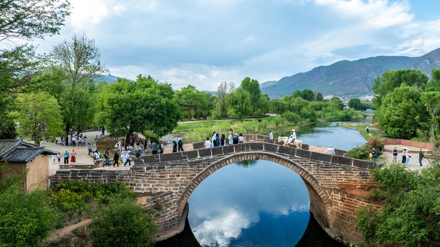 An aerial drone photo taken on April 21, 2025 shows the scenery of Sideng Village in Shaxi Town, Jianchuan County, southwest China's Yunnan Province. (Xinhua/Hu Chao)A villager crosses Yujin Bridge on horseback at Sideng Village of Shaxi Town, Jianchuan County, southwest China's Yunnan Province, April 18, 2025. (Xinhua/Liu Lianfen)An elderly woman of Bai ethnic group makes embroidered sachets in Hualong Village of Shaxi Town, Jianchuan County, southwest China's Yunnan Province, April 20, 2025. (Xinhua/Hu Chao)Villagers work in the field in Beilong Village of Shaxi Town, Jianchuan County, southwest China's Yunnan Province, April 20, 2025. (Xinhua/Liu Lianfen)Jiang Wufa (1st, R), an inheritor of arts for Shibaoshan Song Festival, a national intangible cultural heritage, rehearses with his apprentices in Shilong Village of Shaxi Town, Jianchuan County, southwest China's Yunnan Province, April 19, 2025. (Xinhua/Liu Lianfen)An aerial drone photo taken on April 19, 2025 shows a view of the Yujin Bridge in Shaxi Town, Jianchuan County, southwest China's Yunnan Province. (Xinhua/Hu Chao)People visit an ancient stage at Sideng Village of Shaxi Town, Jianchuan County, southwest China's Yunnan Province, April 21, 2025. (Xinhua/Hu Chao)People visit Sideng Village in Shaxi Town, Jianchuan County, southwest China's Yunnan Province, April 18, 2025. (Xinhua/Liu Lianfen)A child views rabbit dolls in tie-dye outfit of Bai ethnic group at Sideng Village of Shaxi Town, Jianchuan County, southwest China's Yunnan Province, April 18, 2025. (Xinhua/Hu Chao)An elderly woman of Bai ethnic group weaves at her residence at Sideng Village of Shaxi Town, Jianchuan County, southwest China's Yunnan Province, April 20, 2025. (Xinhua/Hu Chao)Villagers and tourists are pictured in Shaxi Town, Jianchuan County, southwest China's Yunnan Province, April 18, 2025. (Xinhua/Hu Chao)Yang Siyun (R), a descendant of local horse train operators, bids farewell to a foreign tourist at Sideng Village of Shaxi Town, Jianchuan County, southwest China's Yunnan Province, April 19, 2025. (Xinhua/Hu Chao)■