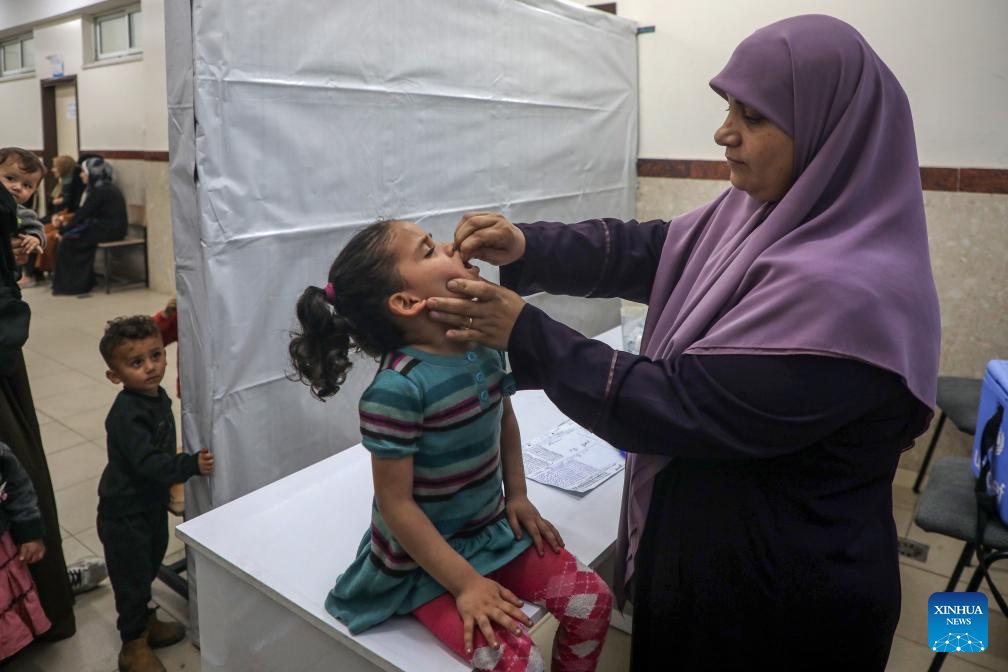 Palestinians work at a United Nations Relief and Works Agency for Palestine Refugees in the Near East (UNRWA) health center, west of Gaza City, amid a shortage of medicine due to Israel's continued closure of the border crossings in the Gaza Strip, on April 28, 2025. (Photo by Rizek Abdeljawad/Xinhua)