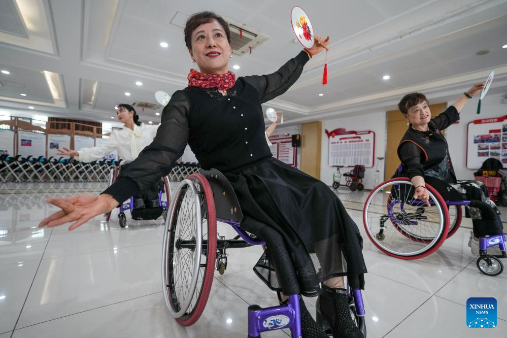 Members of a wheelchair dance team rehearse in Nanjing, east China's Jiangsu Province, April 27, 2025.
