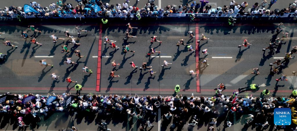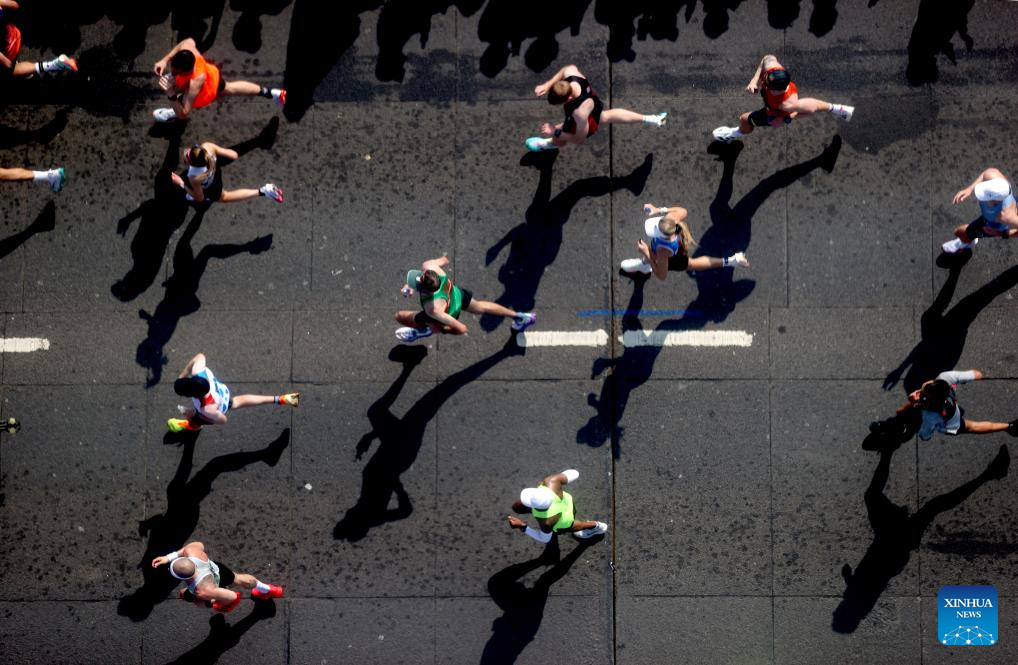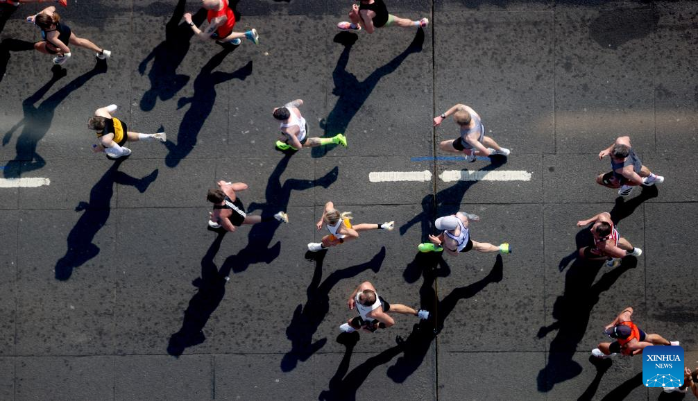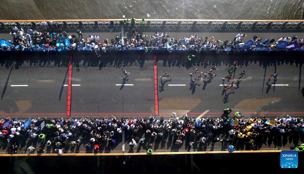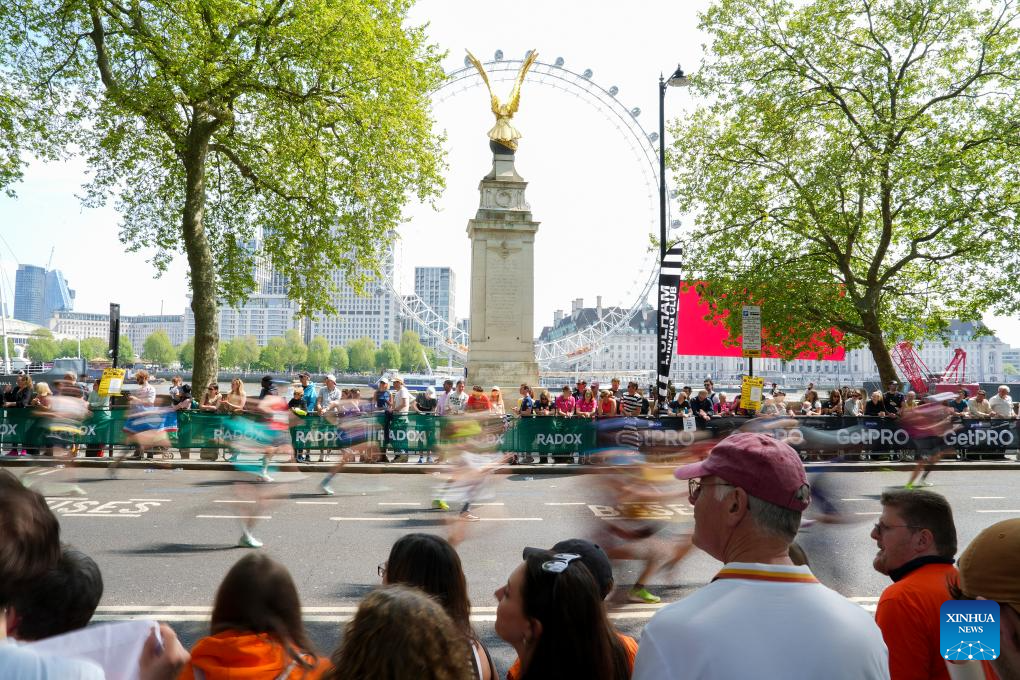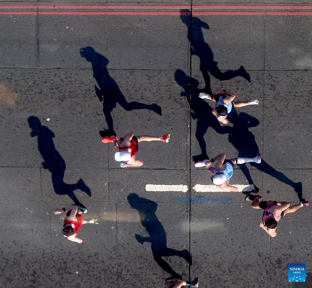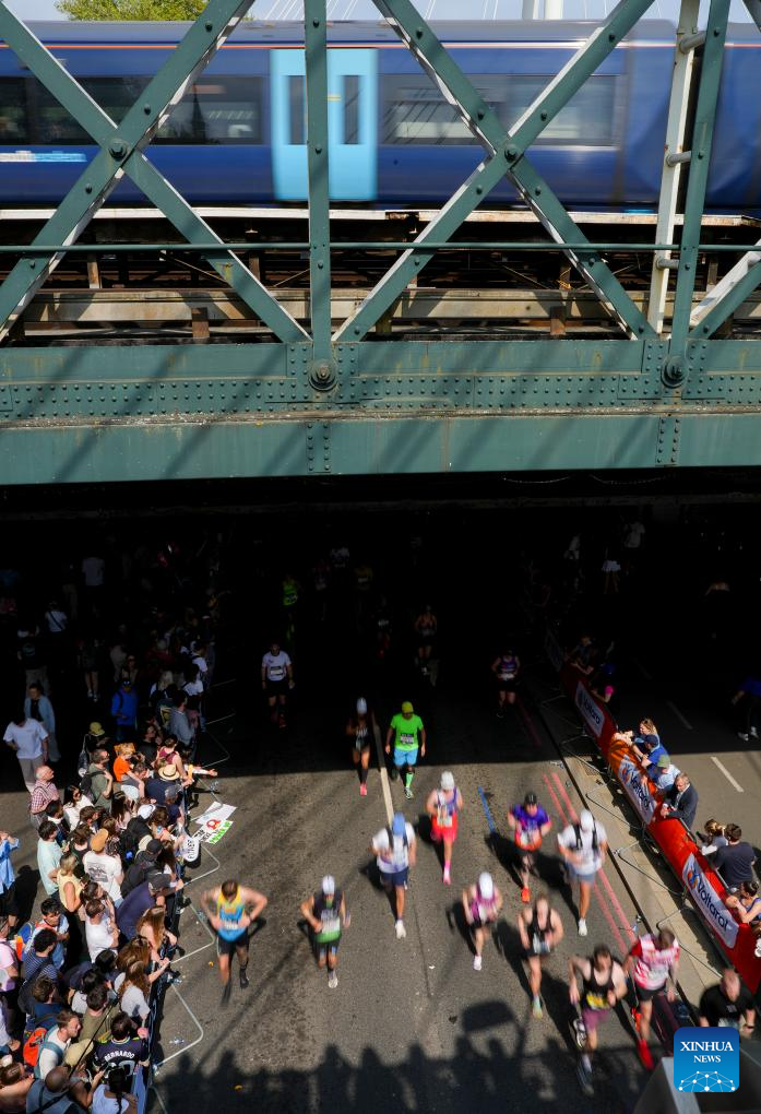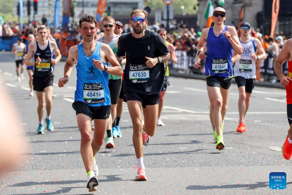 Athletes run at the 2025 London Marathon in London, Britain, April 27, 2025. (Xinhua)