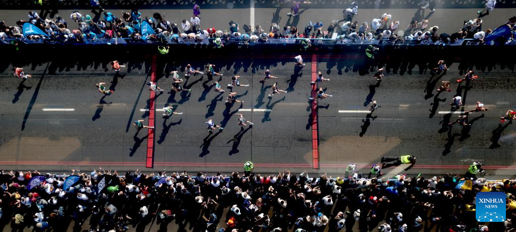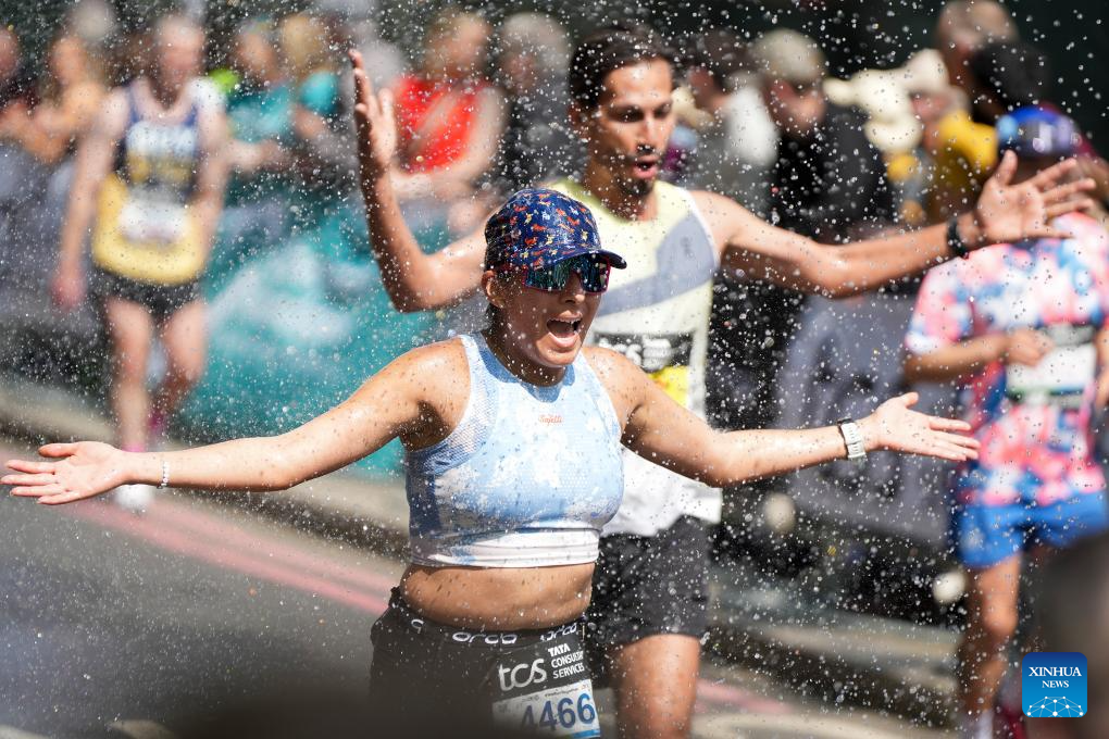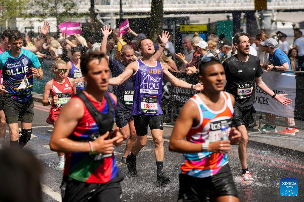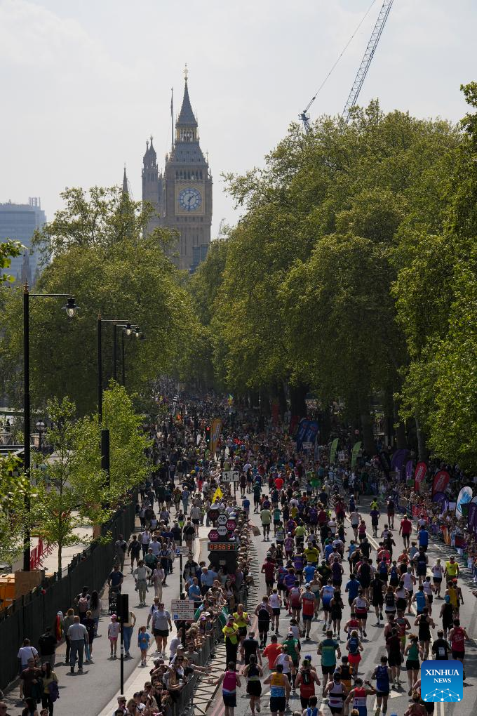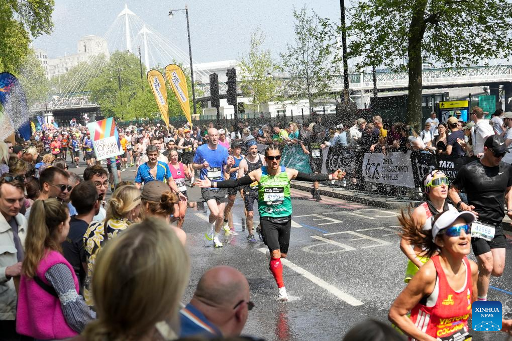 Athletes run at the 2025 London Marathon in London, Britain, April 27, 2025. (Xinhua/Wu Lu)