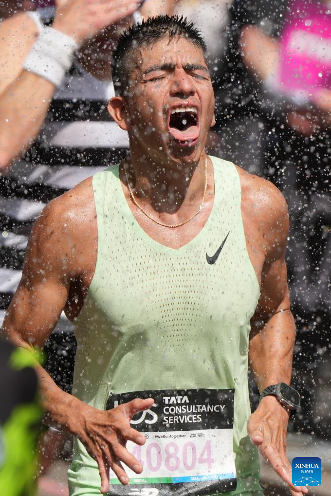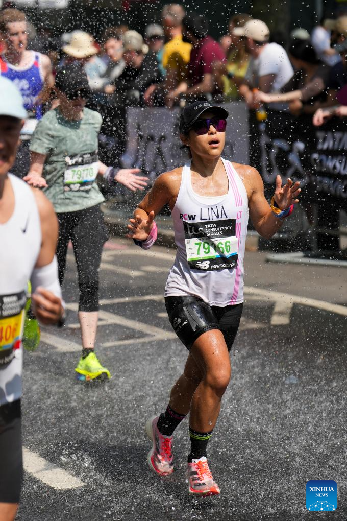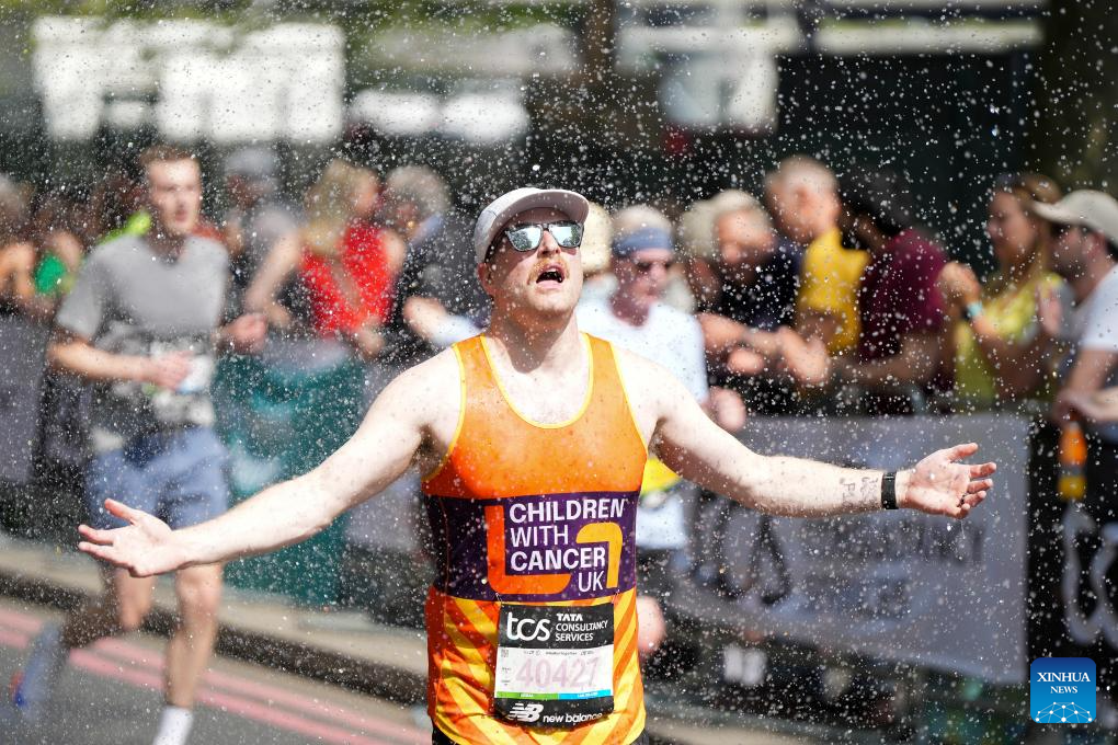 An athlete runs at the 2025 London Marathon in London, Britain, April 27, 2025. (Xinhua/Wu Lu)