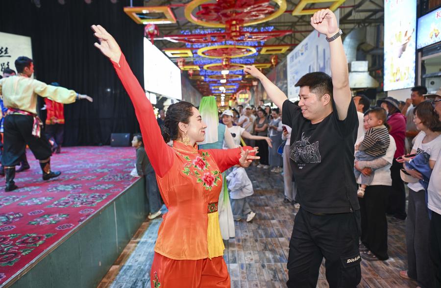 Nurbiye Jureait stages a performance at the night market in Hotan, northwest China's Xinjiang Uygur Autonomous Region, April 16, 2025. (Xinhua/Hu Huhu)Nurbiye Jureait dances with a tourist at the night market in Hotan, northwest China's Xinjiang Uygur Autonomous Region, April 16, 2025. (Xinhua/Hu Huhu)Nurbiye Jureait (L) stages a performance at the night market in Hotan, northwest China's Xinjiang Uygur Autonomous Region, April 16, 2025. (Xinhua/Hu Huhu)Nurbiye Jureait dances at the night market in Hotan, northwest China's Xinjiang Uygur Autonomous Region, April 16, 2025. (Xinhua/Hu Huhu)Artists from Hotan cultural troupe stage a performance at the night market in Hotan, northwest China's Xinjiang Uygur Autonomous Region, April 15, 2025. (Xinhua/Hu Huhu)Nurbiye Jureait and colleagues stage a performance at the night market in Hotan, northwest China's Xinjiang Uygur Autonomous Region, April 15, 2025. (Xinhua/Hu Huhu)Nurbiye Jureait prepares to host a performance at the night market in Hotan, northwest China's Xinjiang Uygur Autonomous Region, April 16, 2025. (Xinhua/Hu Huhu)Artists from Hotan cultural troupe wait to stage a performance at the night market in Hotan, northwest China's Xinjiang Uygur Autonomous Region, April 15, 2025. (Xinhua/Hu Huhu)Nurbiye Jureait is pictured at the night market in Hotan, northwest China's Xinjiang Uygur Autonomous Region, April 16, 2025. (Xinhua/Hu Huhu)People watch a performance at the night market in Hotan, northwest China's Xinjiang Uygur Autonomous Region, April 15, 2025. (Xinhua/Hu Huhu)Nurbiye Jureait (C) communicates with colleagues about a performance at the night market in Hotan, northwest China's Xinjiang Uygur Autonomous Region, April 15, 2025. (Xinhua/Hu Huhu)■