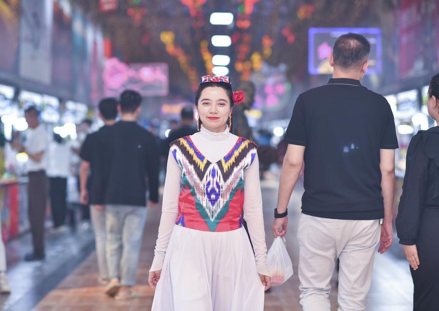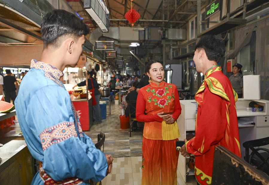 ChineseToday | Young artist enlivens Hotan night market with song and dance -Xinhua