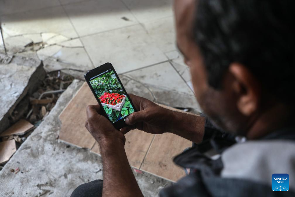 GAZA, April 29 (Xinhua) -- In Tal al-Hawa, west of Gaza City, Akram Abu Khosa, a 49-year-old Palestinian farmer, often sits quietly on his balcony. With his smartphone in hand, he scrolls through photos and videos of his once-vibrant strawberry fields.