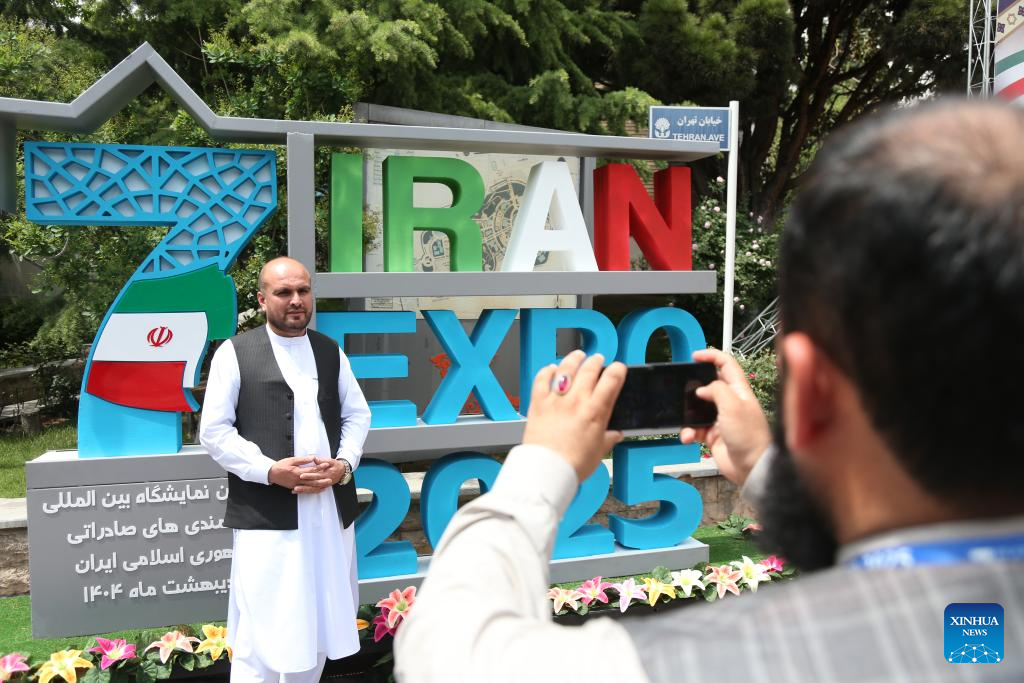 A visitor poses for photos at the 7th Exhibition of Export Potential of the Islamic Republic of Iran in Tehran, Iran, April 28, 2025. The 7th Exhibition of Export Potential of the Islamic Republic of Iran, known as Iran Expo 2025, opened here on Monday. Over 800 Iranian companies have put their latest products and achievements on display at the five-day exhibition. (Xinhua/Shadati)