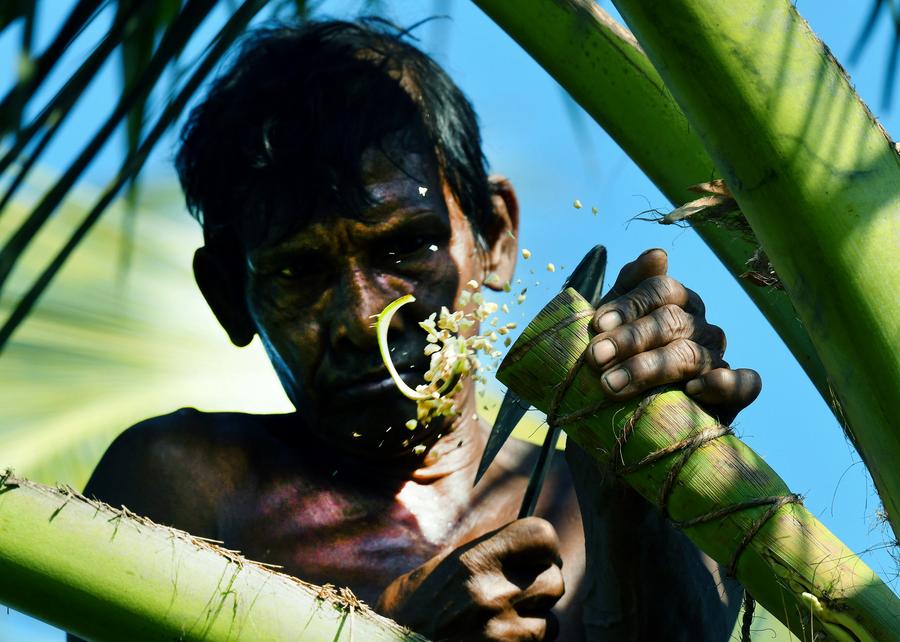 Asia Album: Sap harvesting from coconut trees in Sri Lanka -Xinhua