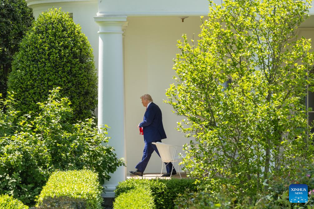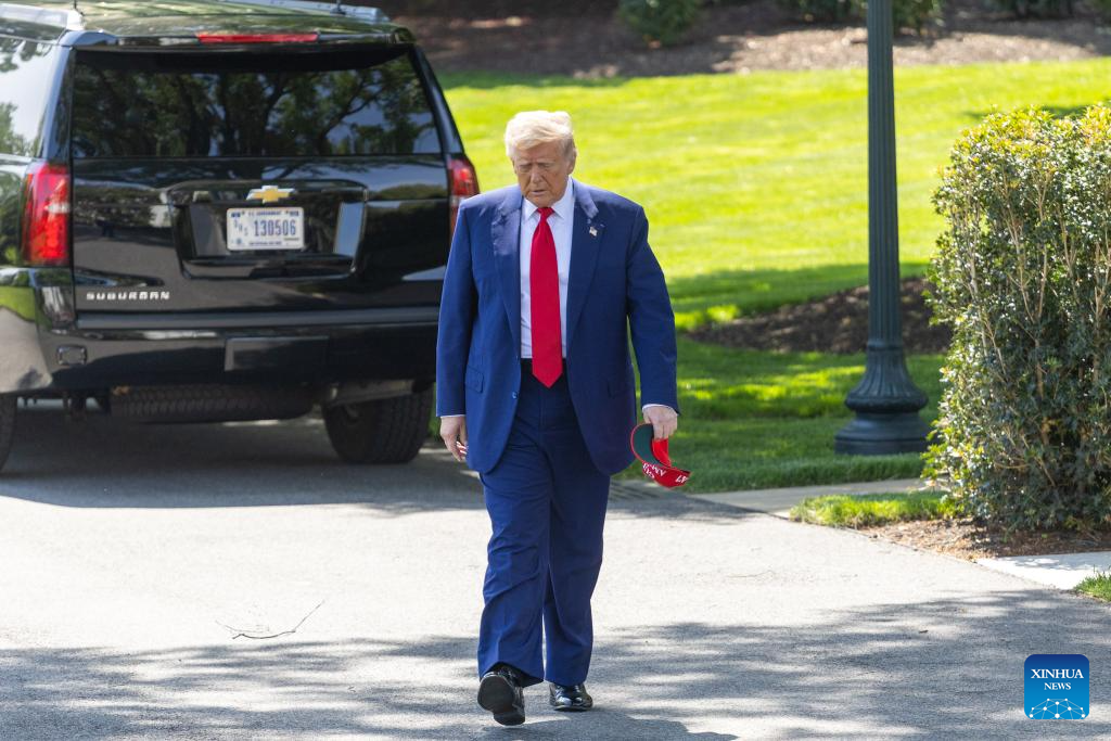 U.S. President Donald Trump walks toward the South Lawn to board Marine One at the White House in Washington, D.C., the United States, on April 29, 2025. The Trump administration has discharged a group of scientists and researchers working on the federal government's evaluation of the impact of climate change, citing the need to re-evaluate its approach to the project, reported The Wall Street Journal on Tuesday. (Xinhua/Hu Yousong)
