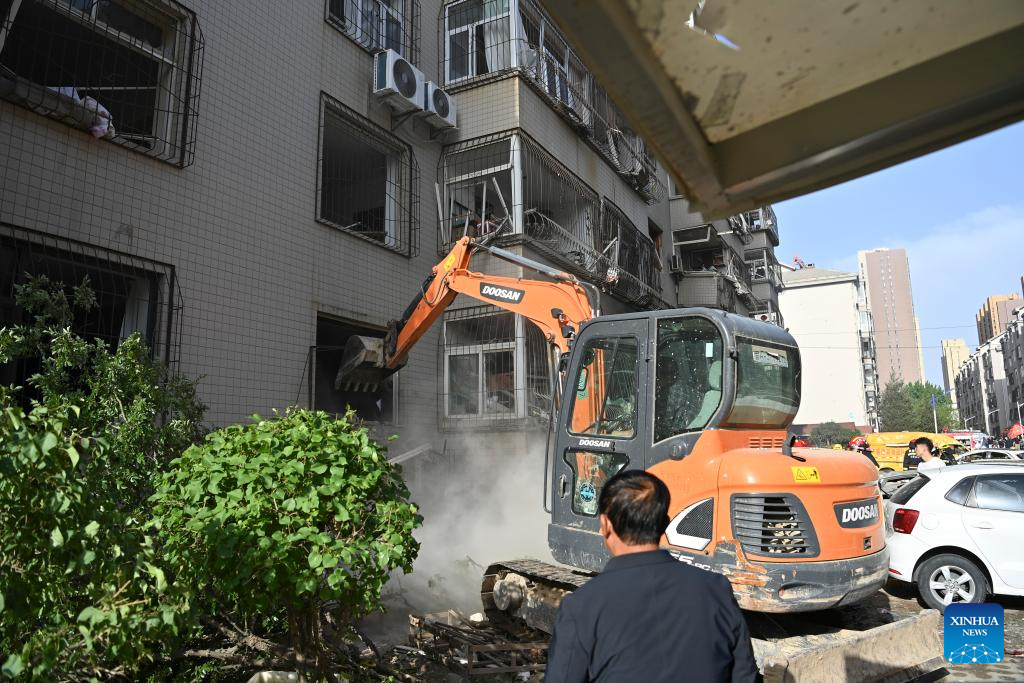 This photo shows the rescue efforts at the explosion site of a residential complex in Taiyuan, capital of north China's Shanxi Province, April 30, 2025.