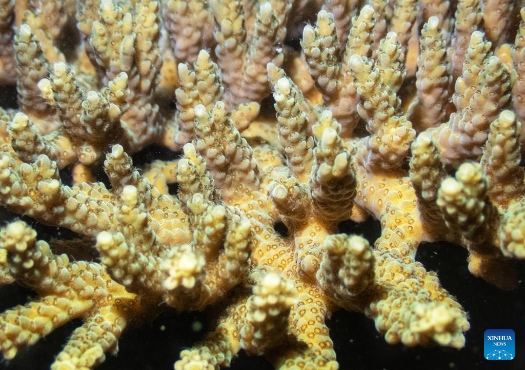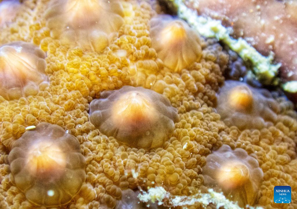 This photo taken on March 17, 2025 shows coral spawning at Koh Rong Archipelago in Preah Sihanouk province, Cambodia. A conservationist group has sighted coral spawning for the second time at Koh Rong Archipelago in southwest Cambodia's Preah Sihanouk province, said a joint press release on Wednesday. (Sophie Owsianka/Fauna & Flora/Handout via Xinhua)