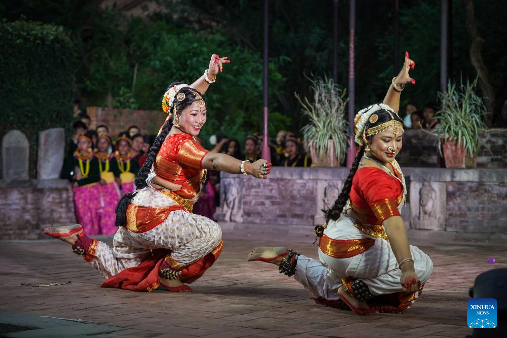 Dancers perform to celebrate International Dance Day on the premises of Patan Durbar Square in Lalitpur, Nepal, April 29, 2025. (Photo by Hari Maharjan/Xinhua)