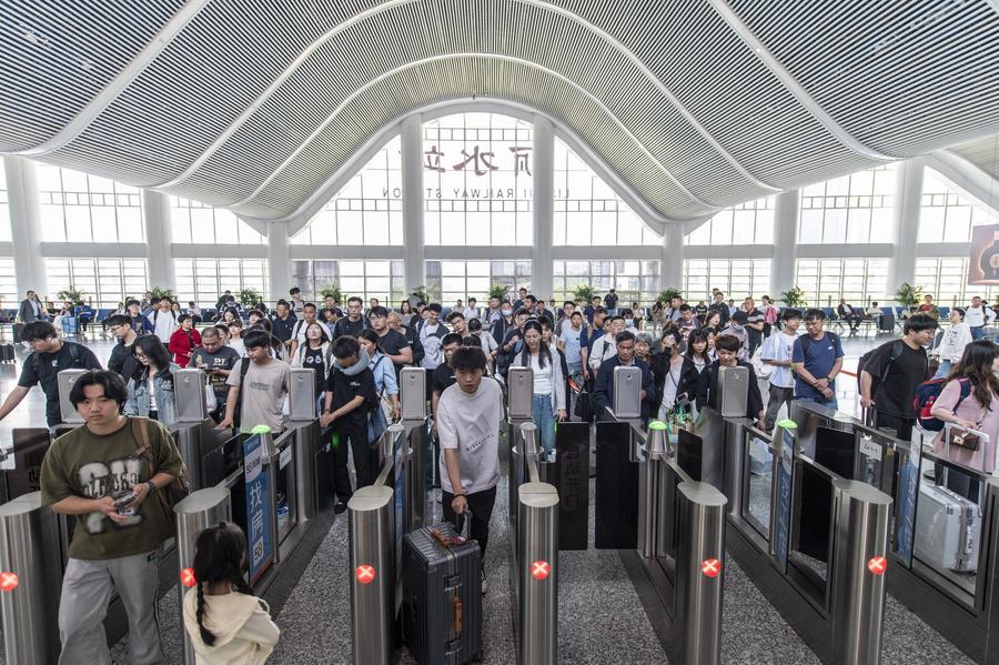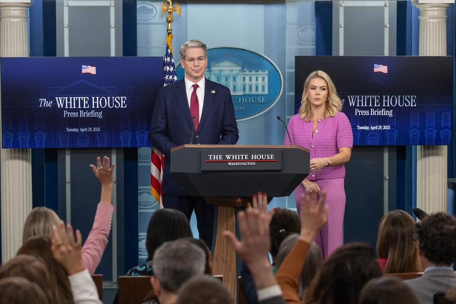 A long-exposure photo shows a Long March-5B carrier rocket with a Yuanzheng-2 (Expedition-2) upper stage atop the rocket, carrying a group of low Earth orbit satellites, blasting off from the Wenchang Space Launch Site in south China's Hainan Province, April 29, 2025. China successfully sent these satellites on Tuesday. The launch marked the 573rd mission of the Long March series carrier rockets. (Xinhua/Pu Xiaoxu)A robot is pictured at the 8th Digital China Summit in Fuzhou, southeast China's Fujian Province, April 29, 2025. The summit highlights the country's strides in digital transformation and the expansion of its digital economy. (Xinhua/Lin Shanchuan)A visitor takes part in the digital artifact VR experience "Bronze Era Odyssey" in Wuhan, central China's Hubei Province, April 29, 2025. The Hubei Provincial Museum on Tuesday launched a cinematic-level digital artifact VR experience to commemorate the 60th anniversary of the discovery of the 2,500-year-old Sword of Goujian, which was named after the king of the state of Yue during the Spring and Autumn Period (770-476 BC). (Xinhua/Wu Zhizun)Passengers check in at Lishui Railway Station in Lishui City, east China's Zhejiang Province, April 29, 2025. China's railway network is expected to handle approximately 144 million passenger trips during the May Day holiday travel rush, which kicked off on Tuesday, the national railway operator said. (Photo by Hu Xiaofei/Xinhua)A drone photo taken on April 28, 2025 shows fishing boats returning to a fishing port before a fishing ban in Yantai City, east China's Shandong Province. (Photo by Sun Wentan/Xinhua)An aerial drone photo taken on April 29, 2025 shows employees of a power project company checking wires at a height of 200 meters near the Yangtze River in Gaogou Town, Wuwei City of east China's Anhui Province. (Xinhua/Zhou Mu)This photo taken on April 29, 2025 shows a countdown clock marking 100 days to go for the World Games 2025 in Chengdu, southwest China's Sichuan Province. The Games will be held in Chengdu from Aug. 7 to 17. (Xinhua/Wang Xi)Actors perform in dance drama "The Book of Songs -- King Gesar" in Lhasa, southwest China's Xizang Autonomous Region, April 28, 2025. The dance drama, based on ancient Chinese classic "Shi Jing" (the Book of Songs) and Tibetan epic King Gesar, was staged here on Monday evening. (Xinhua/Tenzing Nima Qadhup)An investigator collects evidence among rubble of the migrant center destroyed in U.S. airstrikes in Saada province, Yemen, April 28, 2025. Casualties from U.S. dawn strikes on a migrant center in the northern province of Saada have risen to 68, according to the Houthi-run al-Masirah TV. (Photo by Mohammed Mohammed/Xinhua)People watch as artists perform the traditional Balinese Janger dance to celebrate International Dance Day at Pererenan Beach in Badung Regency, Bali, Indonesia, April 29, 2025. (Photo by Dicky Bisinglasi/Xinhua)White House Press Secretary Karoline Leavitt (R, Rear) holds a press briefing alongside U.S. Treasury Secretary Scott Bessent (L, Rear) at the White House in Washington, D.C., the United States, on April 29, 2025. The White House has criticized retail giant Amazon's decision to display tariff costs alongside the price of its products. Responding to a report of the planned Amazon move, White House Press Secretary Karoline Leavitt on Tuesday called the move a "hostile and political act." She made the remark during a press briefing with Treasury Secretary Scott Bessent. (Xinhua/Hu Yousong)■