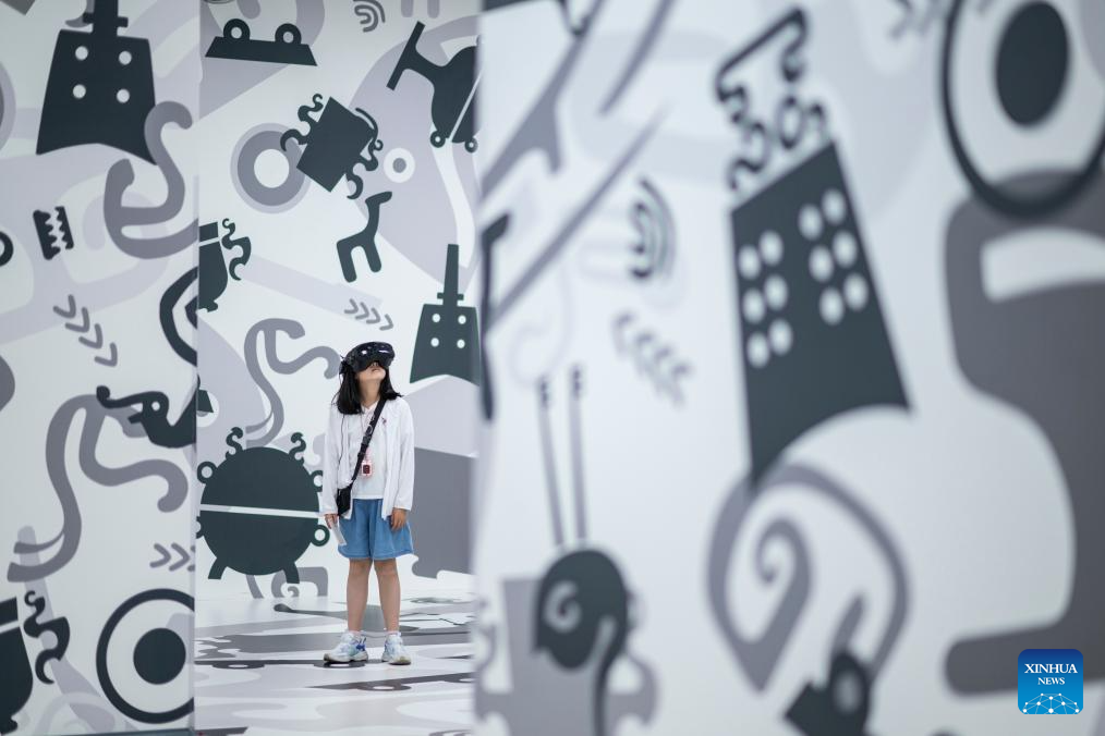 A visitor takes part in the digital artifact VR experience "Bronze Era Odyssey" in Wuhan, central China's Hubei Province, April 29, 2025. The Hubei Provincial Museum on Tuesday launched a cinematic-level digital artifact VR experience to commemorate the 60th anniversary of the discovery of the 2,500-year-old Sword of Goujian, which was named after the king of the state of Yue during the Spring and Autumn Period (770-476 BC). (Xinhua/Wu Zhizun)