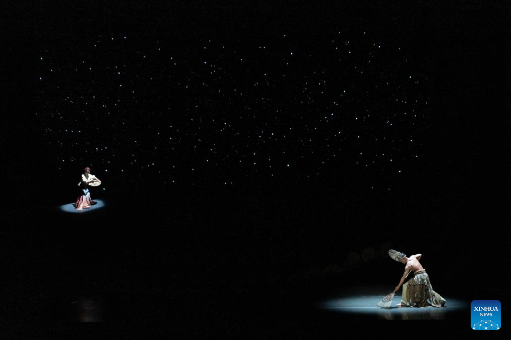 Actors perform in dance drama "The Book of Songs -- King Gesar" in Lhasa, southwest China's Xizang Autonomous Region, April 28, 2025. The dance drama, based on ancient Chinese classic "Shi Jing" (the Book of Songs) and Tibetan epic King Gesar, was staged here on Monday evening. (Xinhua/Tenzing Nima Qadhup)