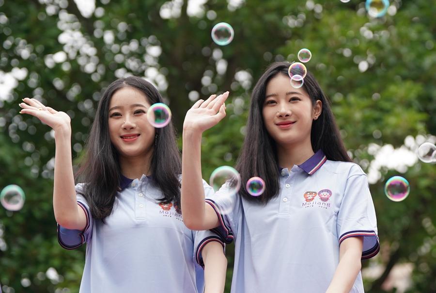 A pair of twins are pictured during the 19th Mojiang international twins festival in Mojiang Hani Autonomous County, southwest China's Yunnan province, May 1, 2025. (Xinhua/Chen Xinbo)