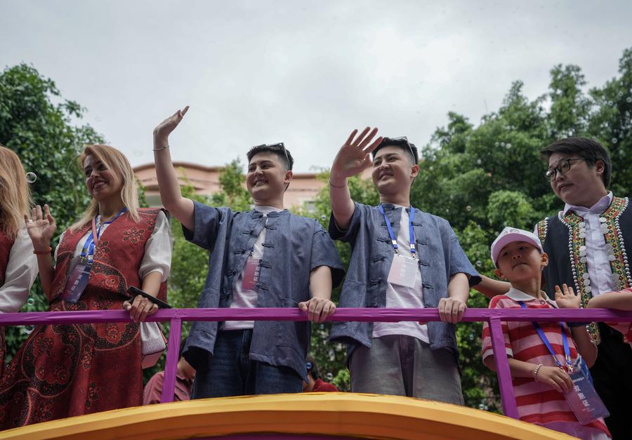 MOJIANG, May 1 (Xinhua) -- Over 1,000 multiple births from around the world took part in a parade during the twins festival in Mojiang Hani Autonomous County of southwest China's Yunnan province on Thursday.