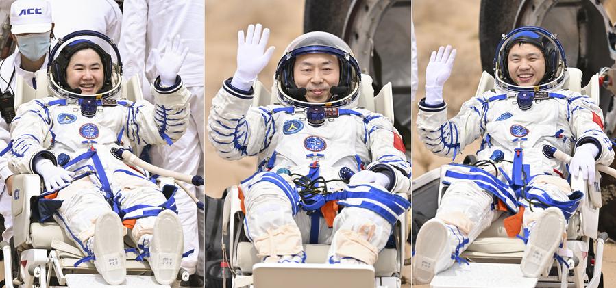 This combo photo taken on April 30, 2025 shows astronauts Wang Haoze, Cai Xuzhe and Song Lingdong (from L to R) out of the return capsule of the Shenzhou-19 crewed spaceship at the Dongfeng landing site in north China's Inner Mongolia Autonomous Region. The three astronauts of the Shenzhou-19 crewed mission were all out of the return capsule on Wednesday afternoon, and the China Manned Space Agency (CMSA) declared the mission a success. (Xinhua/Li Xin, Lian Zhen)Passengers prepare to board a train at Nanjing Railway Station in Nanjing, east China's Jiangsu Province, April 30, 2025. China's railway network is expected to handle approximately 144 million passenger trips during the eight-day May Day holiday travel rush, which kicked off on Tuesday, the national railway operator said. (Photo by Su Yang/Xinhua)Silicon carbide charging modules and a traction motor controller for new energy vehicles are pictured at a company of Gree Electric Appliances Inc. of Zhuhai in south China's Guangdong Province, April 29, 2025. In recent years, Zhuhai has introduced a series of measures to strengthen support for private enterprises, covering financial loans, intellectual property protection, and government services. (Xinhua/Deng Hua)Players of China cheer before the Group A match between China and Thailand at BWF Sudirman Cup in Xiamen, southeast China's Fujian Province, April 30, 2025. (Xinhua/Wei Peiquan)Ships loaded with containers are pictured at the Port of Los Angeles, California, the United States, on April 29, 2025. The Port of Los Angeles, the largest and busiest port in the United States, is expecting a 35 percent slump in shipments from Asia next week, the port's executive director told media on Tuesday. (Photo by Qiu Chen/Xinhua)Soldiers march during a rehearsal for the Victory Day military parade in Moscow, Russia, April 29, 2025. (Photo by Alexander Zemlianichenko Jr/Xinhua)A woman poses for photos at a tulip pick farm in Niagara-on-the-Lake, Ontario, Canada, on April 30, 2025. (Photo by Zou Zheng/Xinhua)■
