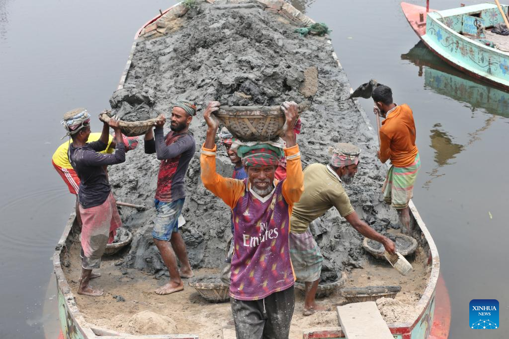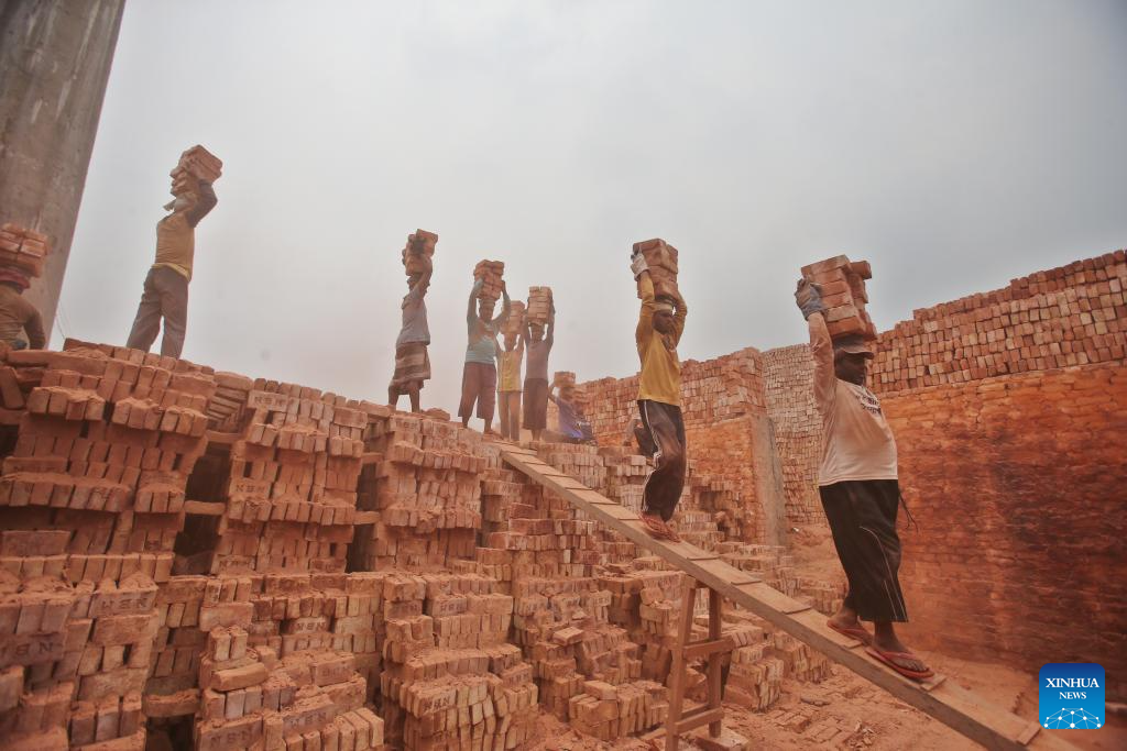 People work at a brick factory in Dhaka, Bangladesh, April 30, 2025. Traditional manual brick kilns are widely distributed across rural and suburban areas of Bangladesh, which provide employment for a large labor force. (Photo by Habibur Rahman/Xinhua)