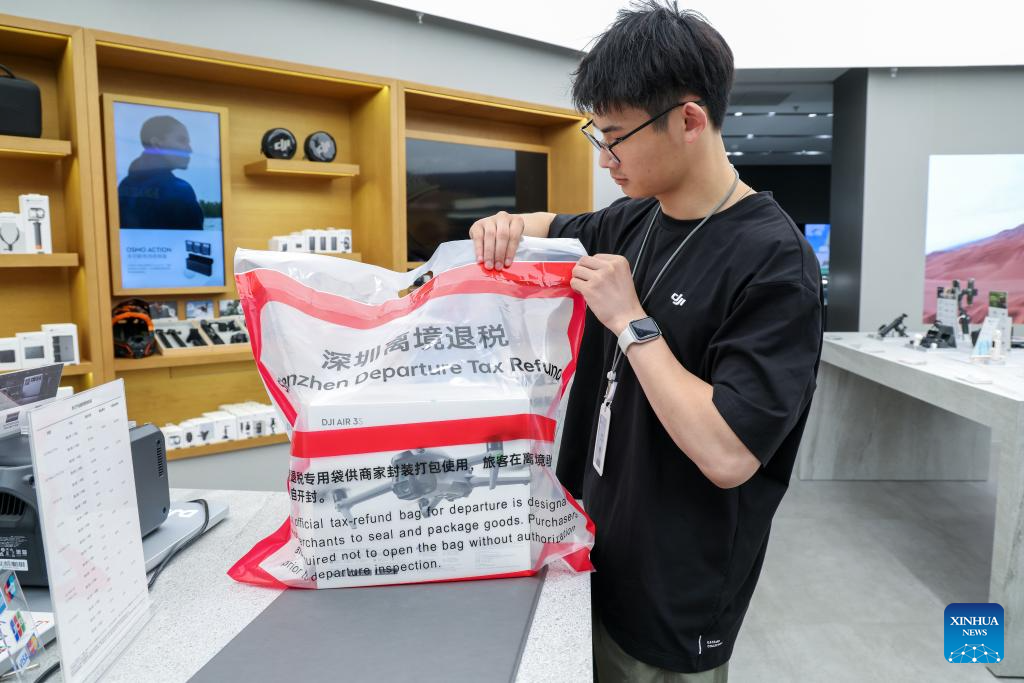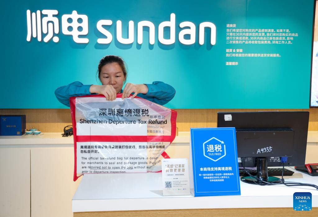 To further streamline the departure tax refund process for overseas travelers, Shenzhen launched a new pilot program featuring a "one order, one bag" model at three designated malls on April 27. Under the scheme, purchases and departure tax refund forms are packed together in sealed bags, enabling customs officials to quickly verify the packaging's authenticity and cut inspection time by more than 50 percent.