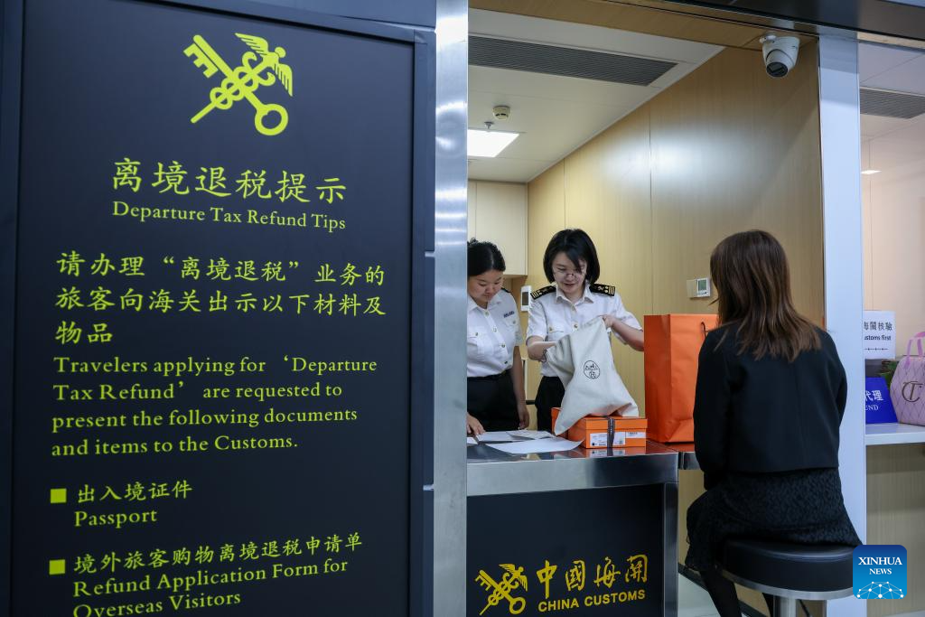 At the same time, a nationwide shift on departure tax refunds from a refund-upon-departure mode to a refund-upon-purchase mode enables foreign visitors to claim value-added tax rebates instantly. (Xinhua/Mao Siqian)