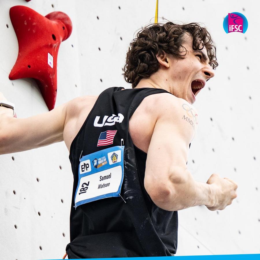 BALI, May 3 (Xinhua) -- American Samuel Watson claimed the men's speed climbing gold in a world record time of 4.64 seconds at the IFSC World Cup Bali on Saturday, marking his fifth record-breaking performance in this event.