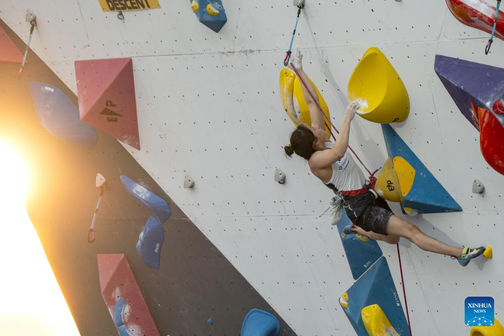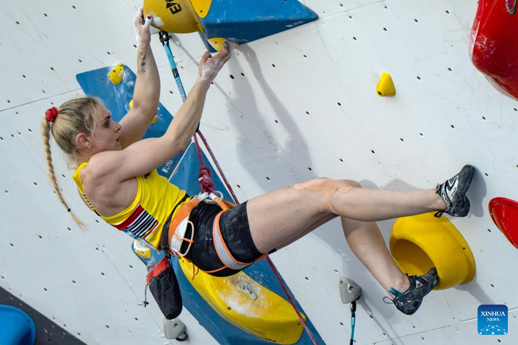 Heloise Doumont of Belgium competes during the women's lead qualification at the IFSC Climbing World Cup Bali 2025 in Bali, Indonesia, May 2, 2025. (Photo by Dicky Bisinglasi/Xinhua)