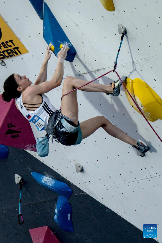 Rosa Rekar of Slovenia competes during the women's lead qualification at the IFSC Climbing World Cup Bali 2025 in Bali, Indonesia, May 2, 2025. (Photo by Dicky Bisinglasi/Xinhua)