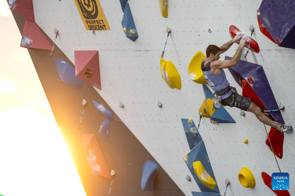 Martin Stranik of the Czech Republic competes during the men's lead qualification at the IFSC Climbing World Cup Bali 2025 in Bali, Indonesia, May 2, 2025. (Photo by Dicky Bisinglasi/Xinhua)
