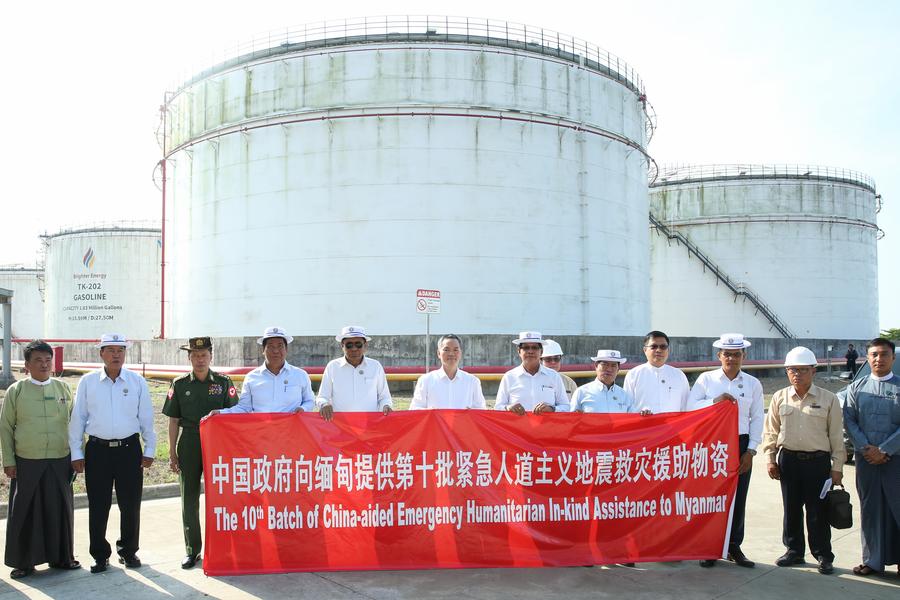 YANGON, May 3 (Xinhua) -- The tenth batch of emergency humanitarian aid supplies dispatched by the Chinese government was handed over to Myanmar on Friday in Yangon, Myanmar.