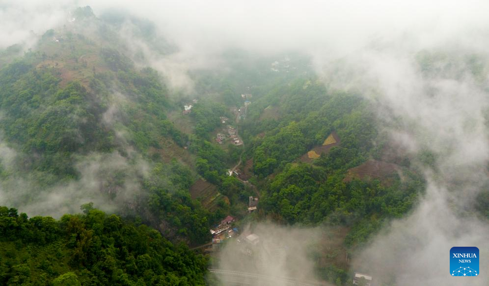 An aerial drone photo taken on April 29, 2025 shows a view of Wangu Village of Yanjin County, Zhaotong City, southwest China's Yunnan Province. (Photo by Peng Yikai/Xinhua)