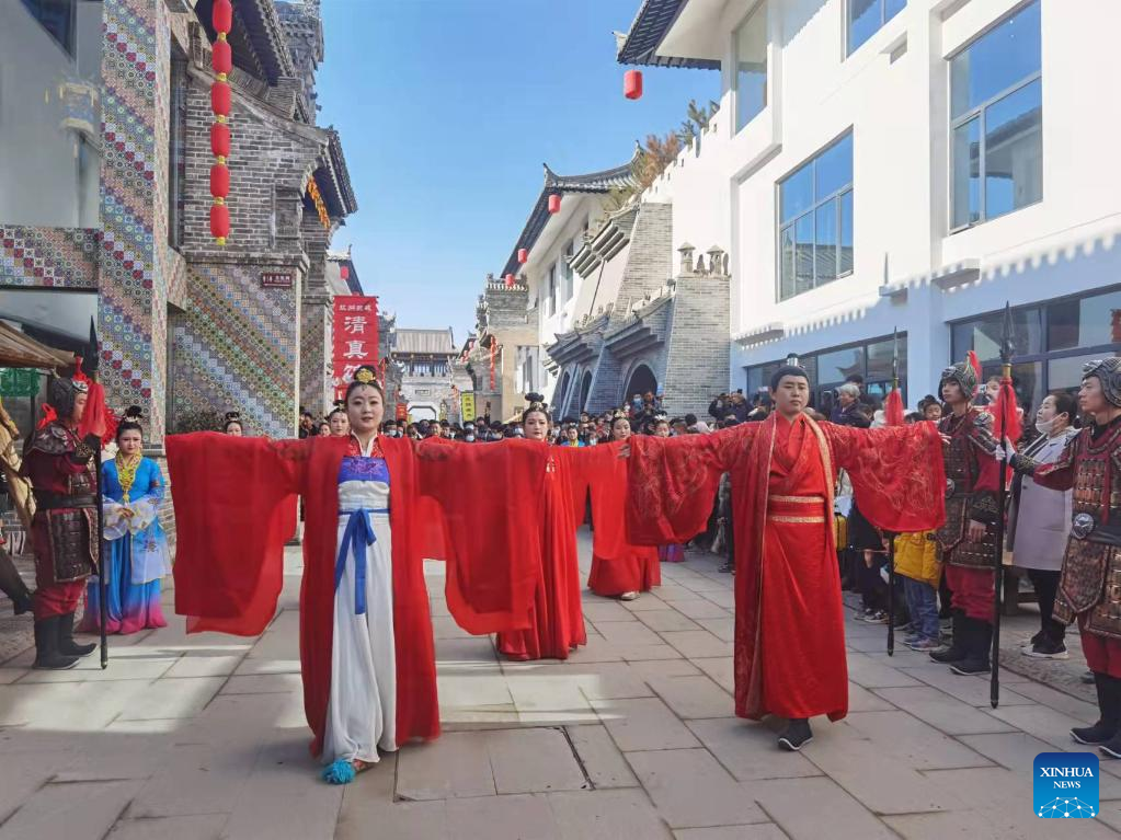 LANZHOU, May 3 (Xinhua) -- During the May Day holiday, a scenic area in northwest China drew visitors seeking to explore its ancient way of life, dating back more than 1,000 years.