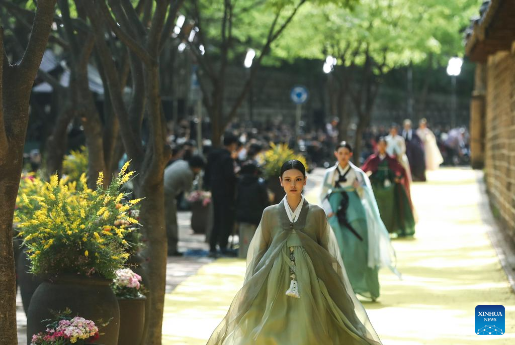 Models present creations in a fashion show in Seoul, South Korea, on May 2, 2025. (Xinhua/Yao Qilin)