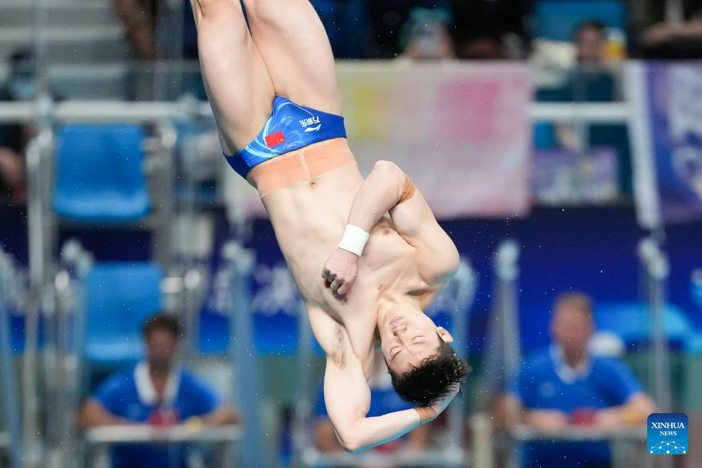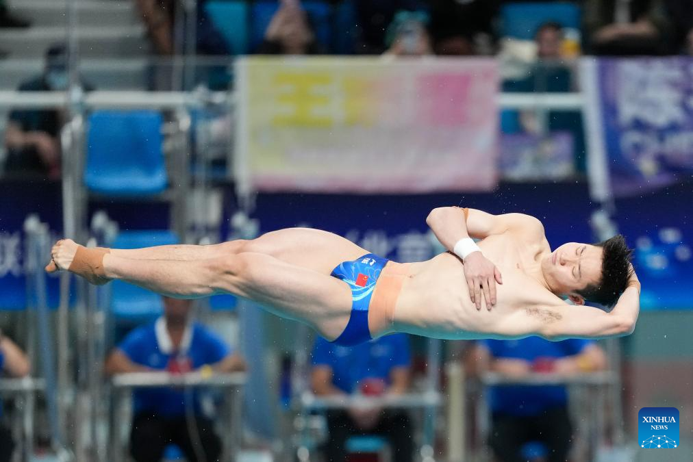China's Wang Zongyuan competes during the mixed 3m & 10m team final at the World Aquatics Diving World Cup 2025 Super Final in Beijing, capital of China, on May 2, 2025. (Xinhua/Ju Huanzong)