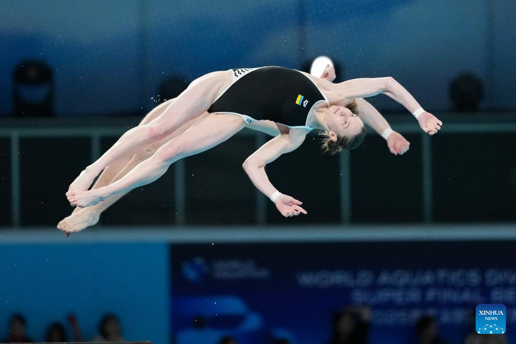 Ukraine's Kseniia Bailo (front)/Kirill Boliukh compete during the mixed 3m & 10m team final at the World Aquatics Diving World Cup 2025 Super Final in Beijing, capital of China, on May 2, 2025. (Xinhua/Ju Huanzong)