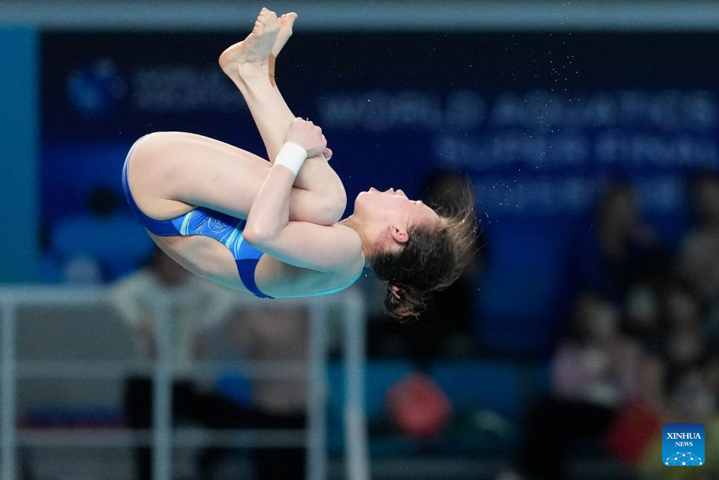 China's Chen Yiwen competes during the mixed 3m & 10m team final at the World Aquatics Diving World Cup 2025 Super Final in Beijing, capital of China, on May 2, 2025. (Xinhua/Ju Huanzong)