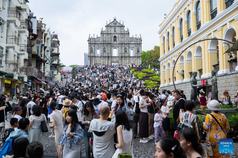 MACAO, May 4 (Xinhua) -- The first three days of China's May Day holiday saw a significant influx of visitors to the Macao Special Administrative Region (SAR), injecting new vitality into the local tourism industry.