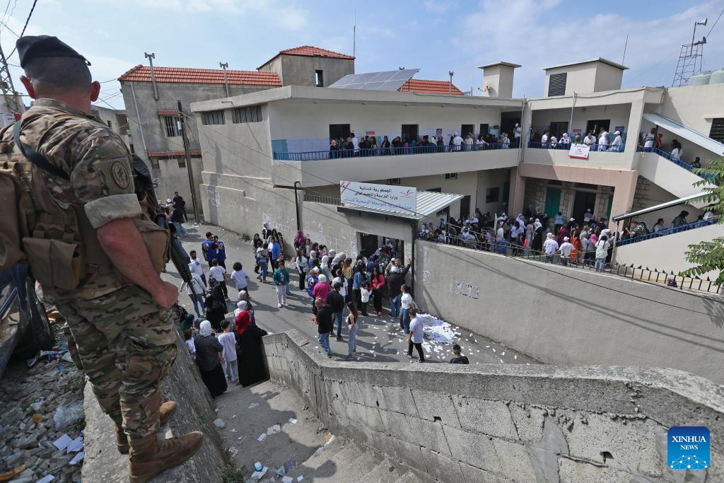 People line up to vote at a polling station in the Mount Lebanon Governorate, Lebanon, on May 4, 2025. Lebanon's municipal and local elections began on Sunday in the Mount Lebanon Governorate, marking the first such elections in nine years after several postponements. (Xinhua/Bilal Jawich)