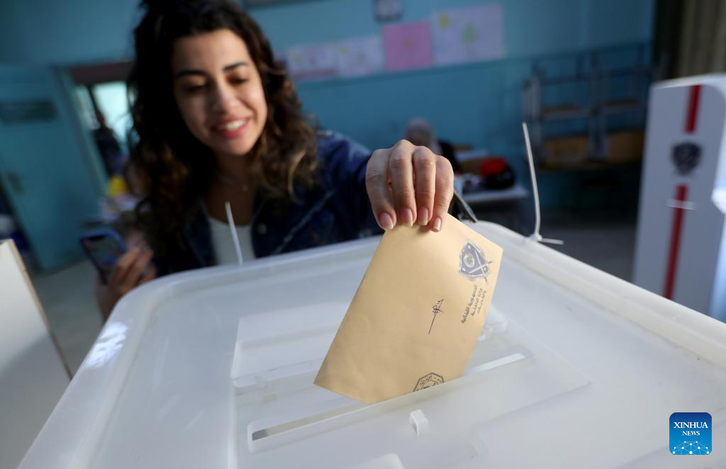 A Lebanese woman votes at a polling station in the Mount Lebanon Governorate, Lebanon, on May 4, 2025. Lebanon's municipal and local elections began on Sunday in the Mount Lebanon Governorate, marking the first such elections in nine years after several postponements. (Xinhua/Bilal Jawich)