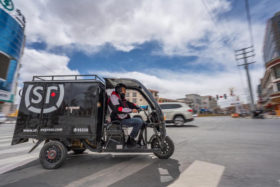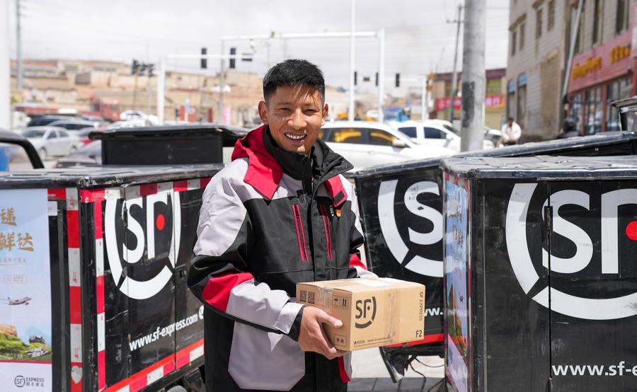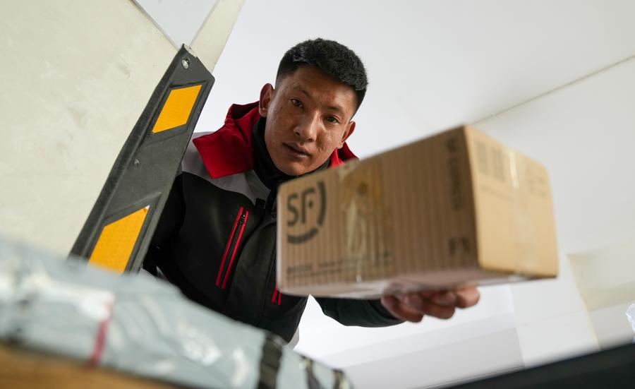 NAGQU, May 4 (Xinhua) -- Laba, a 30-year-old courier in southwest China's Xizang Autonomous Region, has delivered more than 200,000 parcels without a single customer complaint due to personal negligence since he joined SF Express' Nagqu branch in 2016.