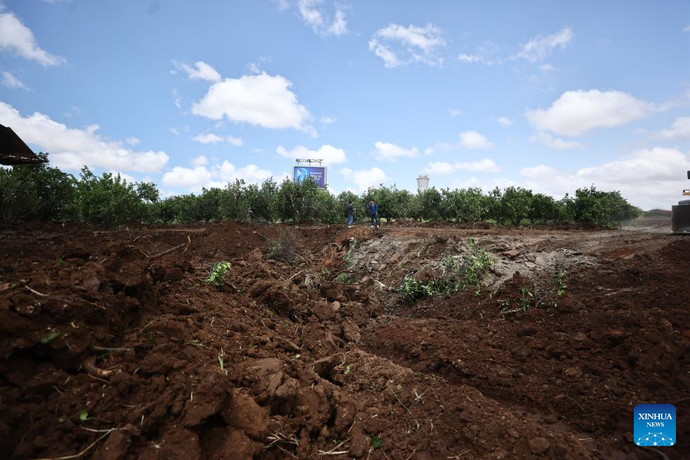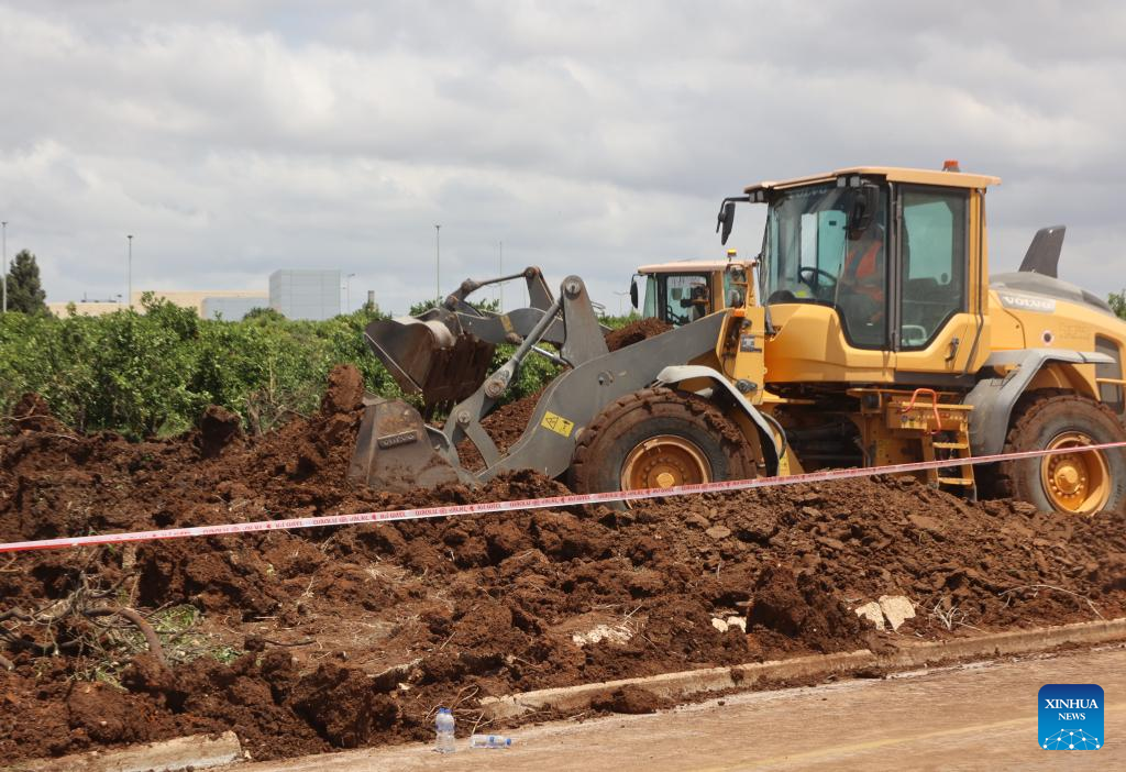This photo taken on May 4, 2025 shows the site of a missile strike near the Ben Gurion International Airport in Tel Aviv, Israel. A missile launched by Yemen's Houthi forces struck Israel's Ben Gurion International Airport on Sunday, injuring two people and causing damage, the Israeli military and local authorities said.