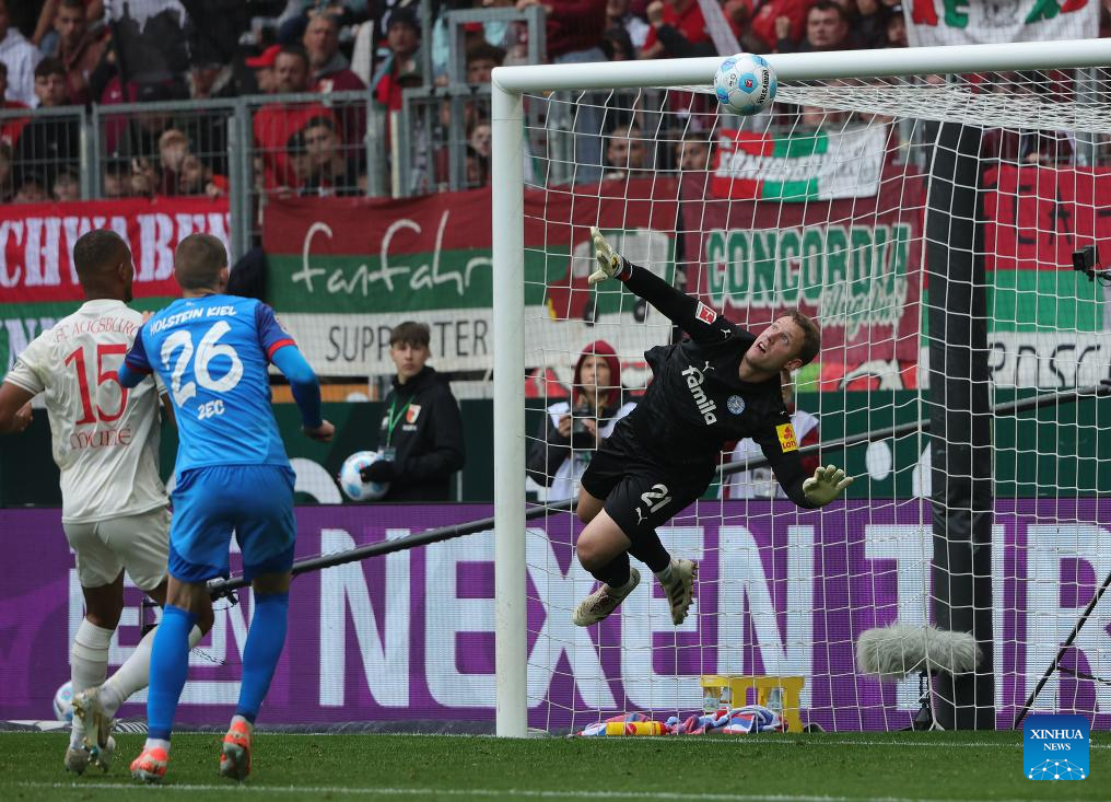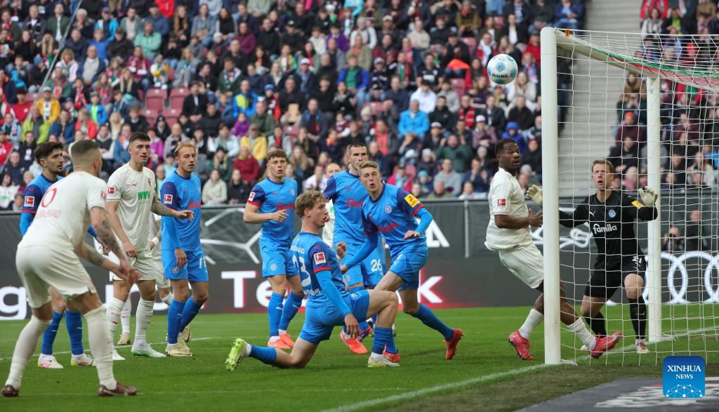 Players of FC Augsburg miss a chance of corner during the German first division Bundesliga football match between FC Augsburg and Holstein Kiel in Augsburg, Germany, May 4, 2025. (Photo by Philippe Ruiz/Xinhua)