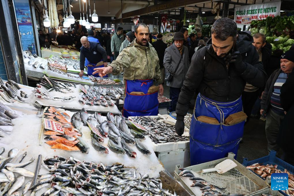 People shop at a local market in Ankara, Türkiye, on May 5, 2025. Türkiye's annual inflation rate dipped slightly in April to 37.86 percent, down from 38.1 percent in March, according to the latest data released by the Turkish Statistical Institute on Monday. (Mustafa Kaya/Handout via Xinhua)