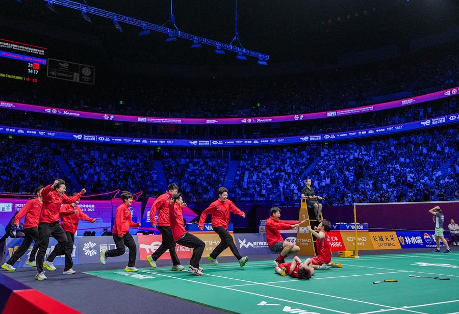 Builders work at a construction site on a roof of a building at a ping pong-themed sports park in Jingxi City, south China's Guangxi Zhuang Autonomous Region, on May 2, 2025. (Photo by Zhao Jingwu/Xinhua)This aerial drone photo taken on May 4, 2025 shows tourists enjoying a boat tour in Rongcheng City, east China's Shandong Province. People across China enjoy the ongoing May Day holiday in various ways. (Photo by Li Xinjun/Xinhua)An aerial drone photo taken on May 3, 2025 shows tourists visiting the Fuzimiao scenic area in Nanjing, east China's Jiangsu Province. People across China enjoy the ongoing May Day holiday in various ways. (Photo by Yang Suping/Xinhua)Tourists watch a folk art performance at a scenic area in Turpan, northwest China's Xinjiang Uygur Autonomous Region, May 4, 2025. People across China enjoy the ongoing May Day holiday in various ways. (Xinhua/Wang Fei)Tourists take photos while enjoying the sunset by the river in Langshan national forest park in Nantong, east China's Jiangsu Province, on May 3, 2025. During the May Day holiday, many young people captured life's beautiful moments amid the vibrant urban atmosphere, exploring the city through a city walk to spend their holiday. (Photo by Xu Congjun/Xinhua)Si Fangfang (L) and Li Wen discuss event agenda at "Jinkun Xinshe", a traditional Chinese-style handicraft studio, in Xuhui District of Shanghai, east China, April 18, 2025. "Jinkun Xinshe" was founded by Si Fangfang and Li Wen, who have converted a foreign-style house into a tranquil and elegant space to offer traditional handicraft courses such as bracelet making, rope braiding, incense crafting, and gold foil painting. The two close friends also host workshops on themes like Chinese classical studies, painting, and traditional Chinese accessories. Frequenters of the studio, most of them youngsters, are allowed to immerse themselves in the traditional culture as a break from the hustle and bustle -- in other words, to "steal a half-day of leisure." "Jinkun Xinshe" and other innovative and youth-oriented shops are injecting greater vitality in Shanghai by enabling never-before consumption scenarios with fresh business styles. (Xinhua/Liu Ying)Liu Shengshu (1st R)/Tan Ning (2nd R) of China celebrate with teammates after the final match between China and South Korea at BWF Sudirman Cup in Xiamen, southeast China's Fujian Province, May 4, 2025. (Xinhua/Sun Fei)Gabonese President-elect Brice Clotaire Oligui Nguema attends his inauguration ceremony in Libreville, capital of Gabon, May 3, 2025. Brice Clotaire Oligui Nguema, who won the April 12 presidential election with 94.85 percent of the vote, was officially sworn in as president of Gabon on Saturday at the Sino-Gabonese Friendship Stadium in Libreville, the country's capital. (Str/Xinhua)Palestinians receive free food from a food distribution center in Gaza City, on May 3, 2025. (Photo by Mahmoud Zaki/Xinhua)■