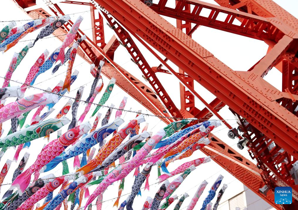 Traditional carp-shaped windsocks called "Koinobori", a symbol of good health and strength for children, are hung up in celebration of the Children's day in Tokyo, Japan, May 5, 2025. (Xinhua/Jia Haocheng)