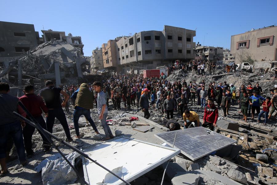 At least 11 people, including seven women and three children, were killed when an airstrike hit a tent sheltering displaced families in Al-Mawasi, west of Khan Younis, Civil Defense Authority spokesperson Mahmoud Basal told Xinhua. Another four people from one family were also killed in the same area earlier in the day.