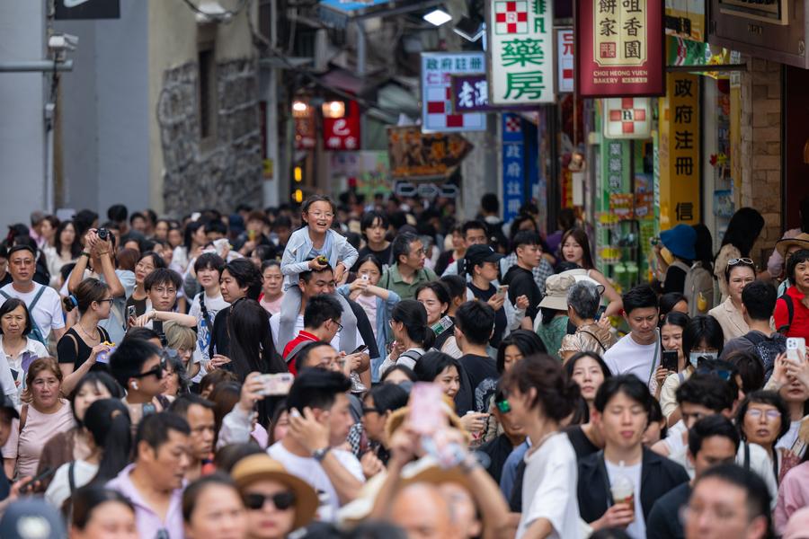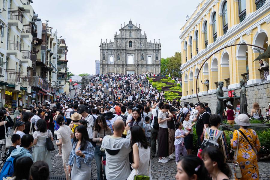 MACAO, May 5 (Xinhua) -- The first three days of China's May Day holiday saw a significant influx of visitors to the Macao Special Administrative Region (SAR), injecting new vitality into the local tourism industry.